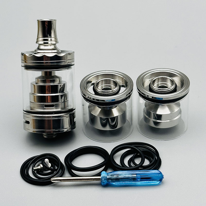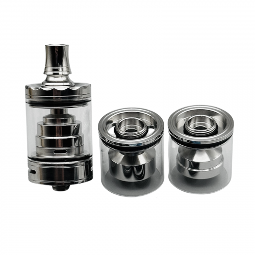 The Diplomat Short Style RTA Atomizer is a compact, rebuildable single-coil tank with a diameter of 23 mm and a top-filling system – ideal for vapers looking for a high-quality MTL or RDL vaping setup. With its robust stainless steel construction, this tank combines durability with timeless design. Precise airflow adjustment allows for perfect draw resistance – from restrictive mouth-to-lung to direct lung inhalation.