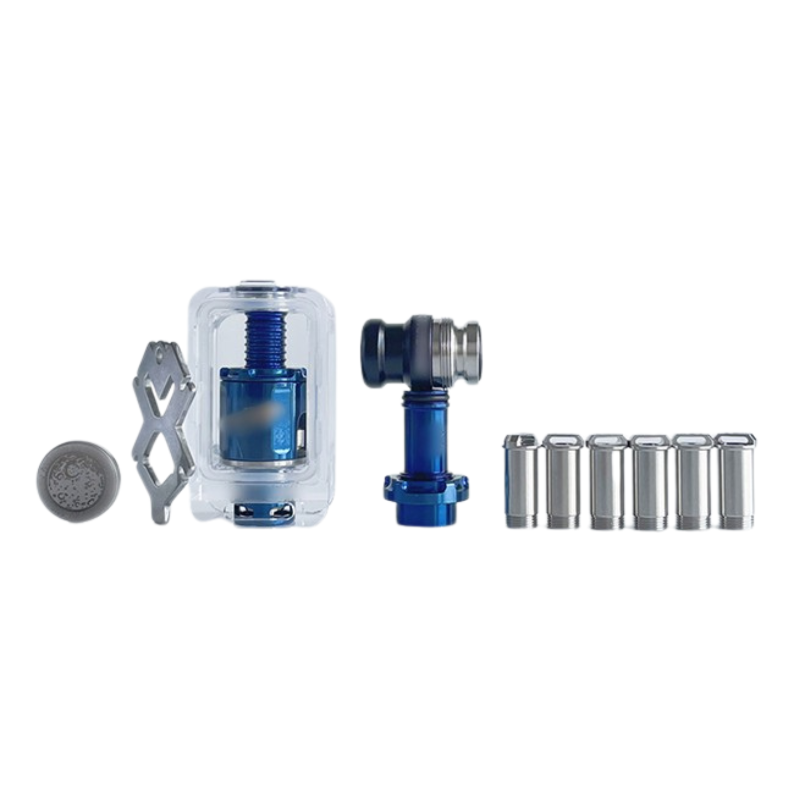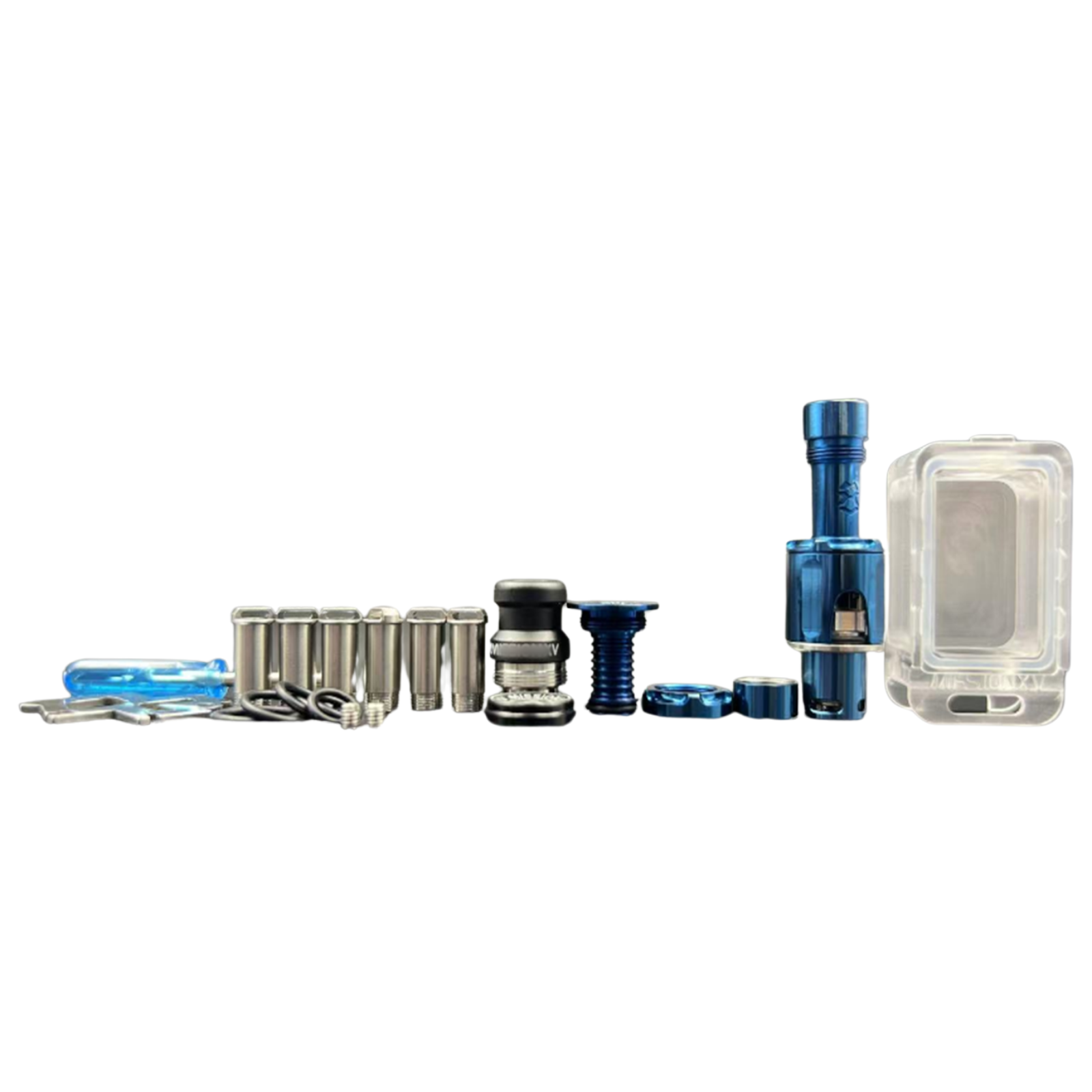 The Mission XV KB2 Style RBA Tank Full Kit is made from Titanium and comes with air pins: 1.0mm / 1.2mm / 2.0mm / 2.5mm / 3.0mm / 3.5mm / 4.3mm. The Boro Tank holds 3.8ml capacity. The MISSION KB2 Style RBA Tank Full Kit is Suitable for dotMod dotAIO V1 / V2 Pod.